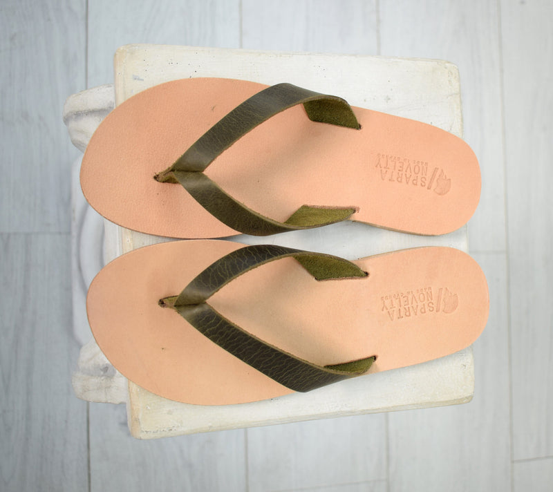Flip flop Greek Leather sandals - slipers Men, Thongs khaki Color, leather sole - insole