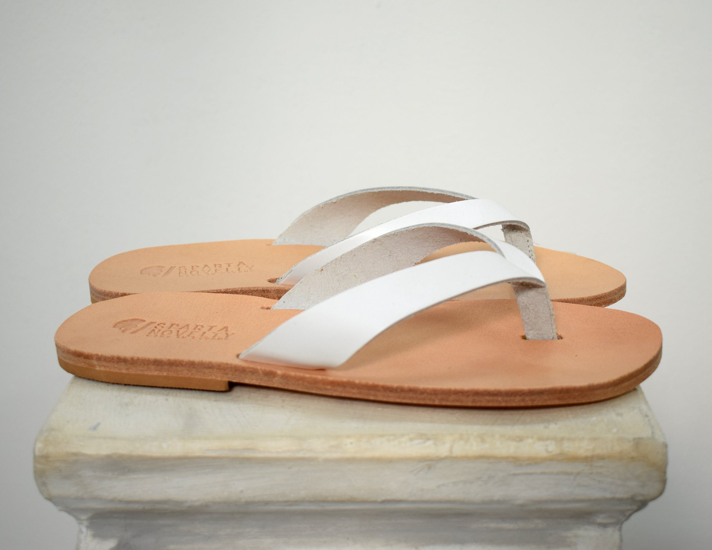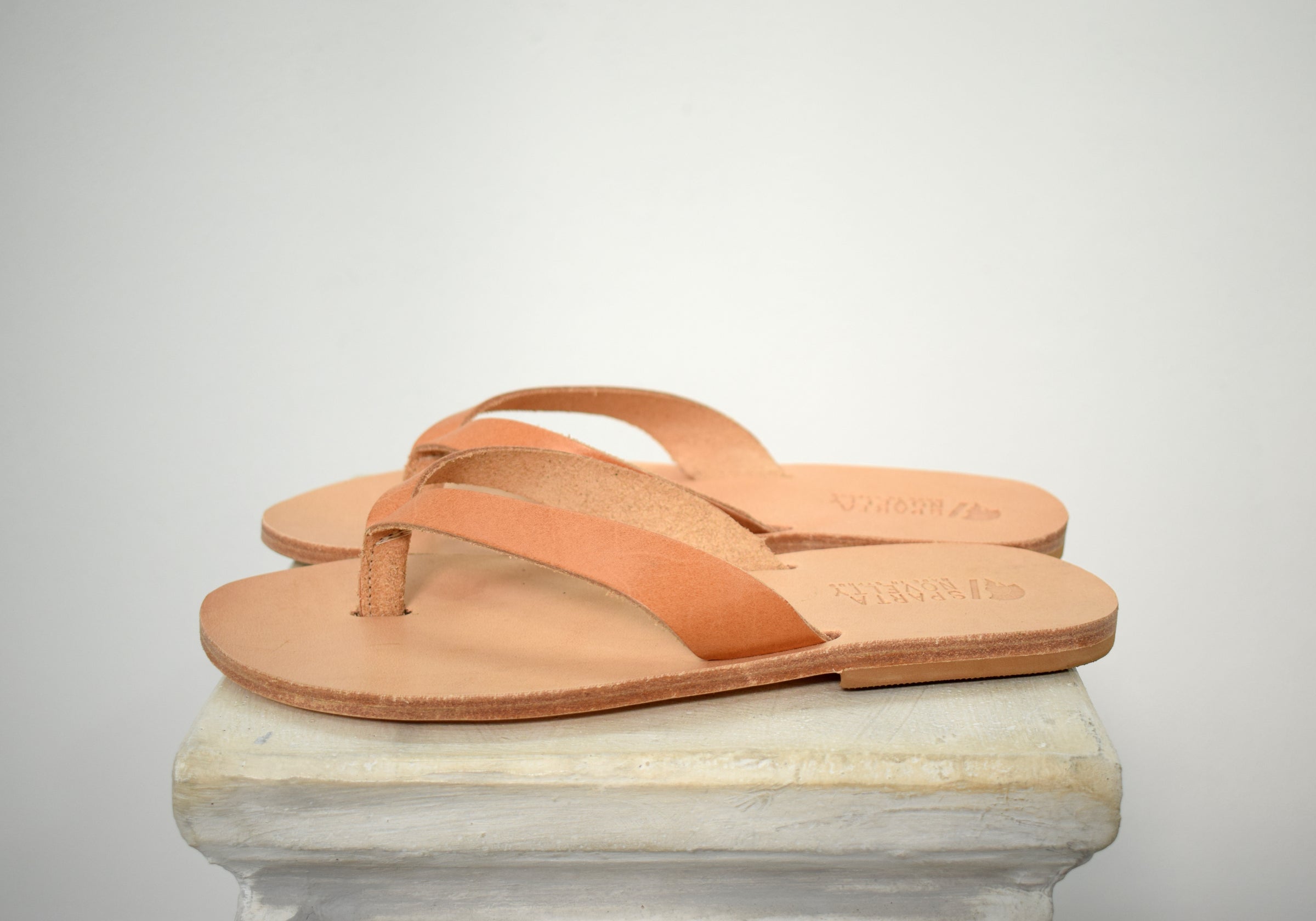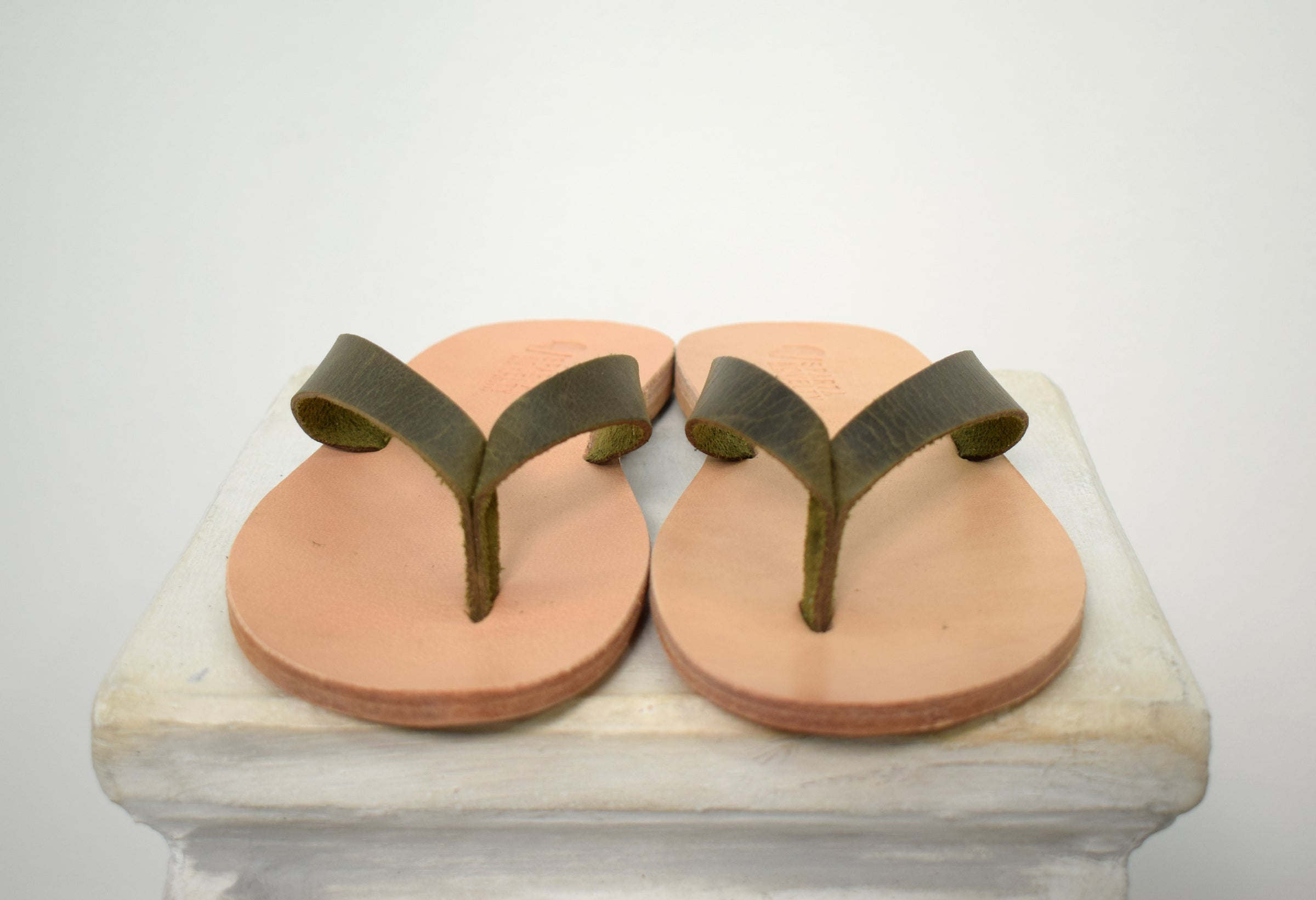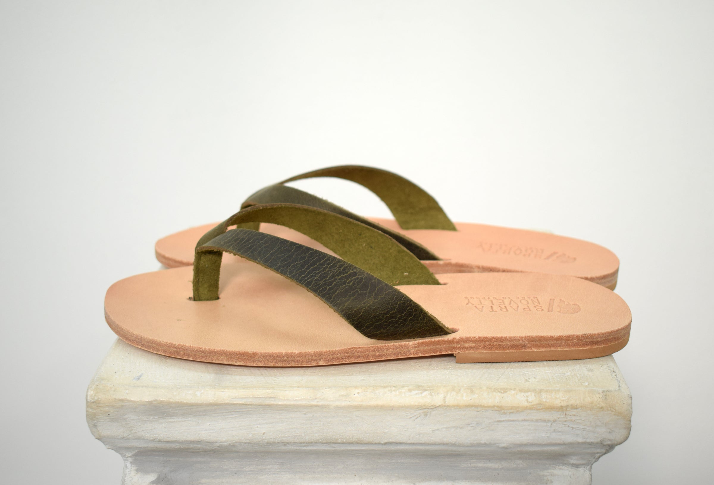 Flip flop Greek Leather sandals - slipers Men, Thongs brown Color, leather sole - insole